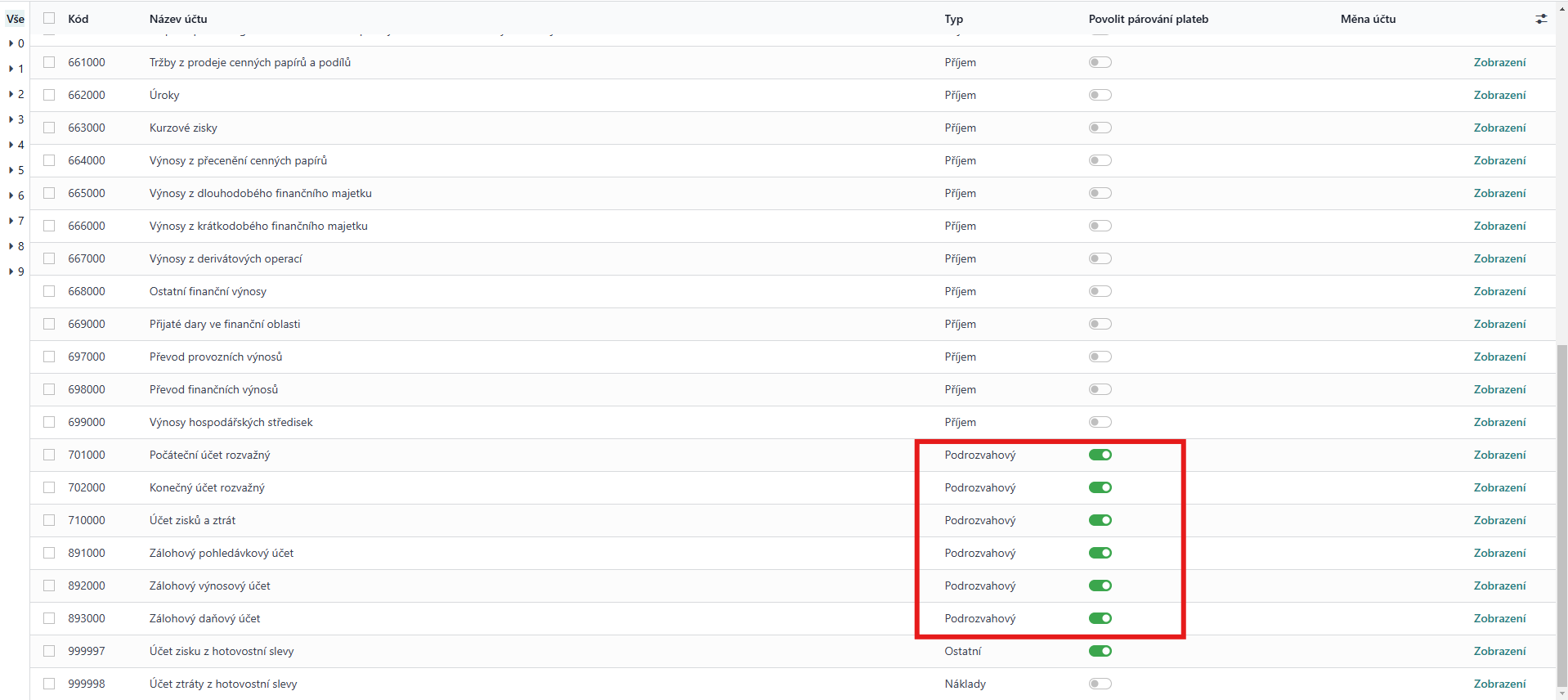 Můžeme zapnout/vypnout párování i na podrozvahových denících
